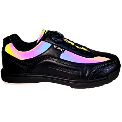 Make a statement before you throw a single ball. The ARES Dial Refractor catches light from every angle, transforming your approach into a visual event. Beyond the striking appearance, these shoes deliver the same precision fit and performance technology that defines Epic footwear.