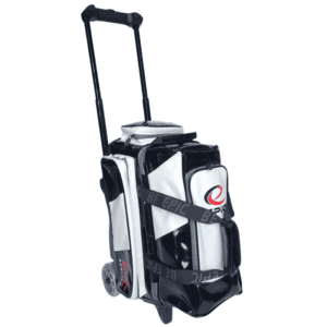 The Legacy 2 Ball Double Roller Black Enamel Bowling Bags boast a strong molded base with reinforced ball cups, durable zippers, and sturdy stitching. The use of high-quality man-made leather fabric not only provides a visually appealing design, but also ensures increased strength and durability. The contrasting 4.5″ urethane wheels add a stylish touch without compromising on noise. With two spacious side accessory compartments on each side and ventilated sections above the shoe compartment, this bag perfectly combines style and functionality.